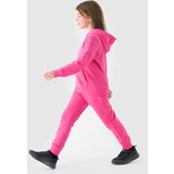 Trenerke za djevojčice idealne su kao element za svakodnevni casual i sportski stajling. Imaju pravilan kroj koji se udobno prilagođava silueti i sužene nogavice završene elastičnim pojasom. Jednostruko džersej pletivo s glatkim jednostranim završetkom čini ih elastičnim i udobnim za nošenje. Brušena unutrašnjost pruža dodatnu toplinu pa su hlače idealan izbor za hladnije dane. Sa strane su 2 otvorena džepa. Elastični pojas bez podešavanja. Izrađene su od 78% prirodnog pamuka, što ih čini mekima, izdržljivima i ugodnima na dodir. Dodatak poliestera (22%) osigurava da je materijal izdržljiv i otporan na habanje kroz mnoga godišnja doba.