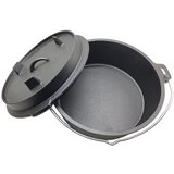 Šifra: GKEF560AL EAN: 3858885653395 Materijali: liveno gvožđe (gus) Boja: crna Dimenzije: 12 litara Proizvođač: Grill King Dobrodošli u svijet Grill Kinga, vlastitog brenda kvalitetnih kuhinjskih proizvoda za kuvanje, serviranje i uživanje u hrani! Strast prema kuvanju na otvorenom ili u zatvorenom prostoru dobiva novu dimenziju kroz kvalitetne proizvode. Grill King asortiman uključuje cijeli niz proizvoda: kamado roštilje, pizza pećnice, Dutch ovene, tave i wokove, porcelansko suđe, program od stakla, kuhinjske noževe, inovativne uređaje poput indukcijskog woka, te pribor i opremu za roštiljanje i pečenje. Oslanjamo se na iskustvo i kvalitet, pružajući vam pouzdane proizvode koji će ispuniti vaša očekivanja, bez obzira na to da li ste početnik ili iskusni kuvar, ili tek gastro uživatelj. Svi naši proizvodi dizajnirani su s ciljem pružanja odličnog iskustva pripreme hrane i kuvanja, uz istovremeno održavanje povoljne cijene. Grill King je Vaš pouzdan partner u svijetu pripreme i uživanja u hrani. Dobrodošli u našu zajednicu ljubitelja gastronomije! Tehničke karakteristike Grill King BBQ kamperski Dutch oven od livenog gvožđa. Promjer 37 cm Visina 18 cm Kapacitet 12 litara Liveno gvožđe. Emajlirano. Nije pogodno za perilicu posuđa. Idealan za postavljanje na kamperski tronožac za Dutch ovene i kotliće. Garancija Garancija 2 godine uz predočenje garantnog lista i računa.