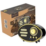 Portable bežični zvučnik, snaga 5 W, zvučnik 52 mm, 3.5mm audio ulaz ( AUX ), utor za micro SD karticu, Bluetooth v4.2. Ugrađena punjiva baterija 1200 mAh, Class A, 18650, vrijeme punjenja 2.5 h, reprodukcija do 5 h. Kompatibilan sa svim uređajima koji posjeduju bluetooth konekciju (PC, MAC, SmartPhone, Tablet). Dimenzije: 140 x 65 x 95 mm, Retro dizajn, boja crna