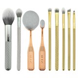 Četkice sa sintetičkim vlaknima.Stvorite besprekorni ten sa MODA Metalik setom za usavršavanje lica. Ova gusta, ultrameka vlakna nanose i sjedinjavaju kremastu i tečnu šminku sa minimalnom apsorpcijom, povećavajući iskorišćenost proizvoda. Jedinstveni oblici su dizajnirani tako da odgovaraju konturama vašeg lica za optimalno sjedinjavanje šminke.Ovaj set sadrži sledeće četkice: 801: Koristite ovu veliku četkicu za aplikaciju kremaste ili tečnepodloge. Pomerite četkicu u glatkom pokretu preko vašeg lica kako biste je naneli i sjedinili. 802: Idealna za nanošenje rumenila ili bronzera za zapanjujući sjaj i previdan ten. 803: Kreirajte besprekorno sjedinjenu konturu ispod vaših jagodica, duž vaše vilice ili na liniji kose. 804: Ova mala četkica je savršena za precizno nanošenje korektora, blend šminke ispod vaših očiju ili za konturu nosa ili drugih manjih površina lica.