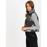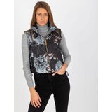 Black short women's vest with flowers. Product code: RVKZ11445.98Pdominant pattern: flowersStyle: Casualoccasion: everyday, for work, for the city, for a walk The model is wearing a size S. Model's measurements: height 176 cm, bust 85 cm, waist 64 cm, hips 92 cm. Dimensions of the vest in size S measured flat: width under the armpits 50 cm, total length 48 cm.