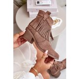 The women's ankle boots from S. Barski are a perfect combination of style and comfort. Made from highquality eco suede, these boots feature an elegant design and attention to detail. Fastened with a convenient zipper, they ensure easy on and off. The upper adorned with fringes adds uniqueness, making them a great choice for various occasions. The pointed toes emphasize the elegant look. These boots are the ideal addition to autumnwinter outfits, making every woman feel special. When choosing a size, please refer to the size chart.3623,5/3724/3824,5/3925/4025,5/4126cm
