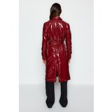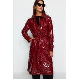 Trendyol Burgundy Shiny Belted Trench Coat Slike