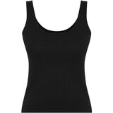 Ženski top Trendyol. okrugli izrez glatko bez printa rebrasta tkanina udoban kroj Mjere modela: visina: 1,79, prsa: 79 struk: 59, bokovi: 86. Proizvod na modelu je veličina S/36. Materijal: 97% pamuk, 3% elastin